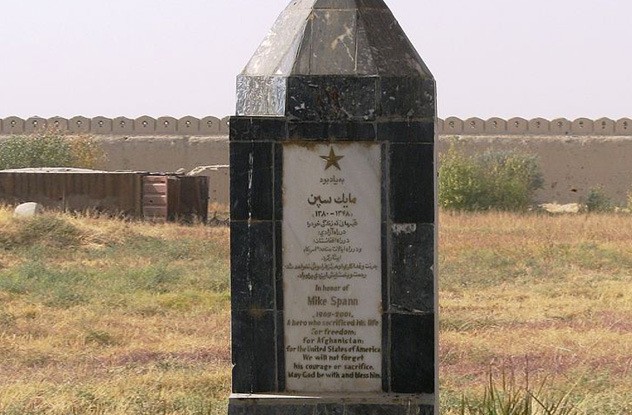 Bia tưởng niệm nhân viên CIA Mike Spann thiệt mạng trong cuộc nổi dậy của tù nhân ở nhà tù Qala-i-Jangi, Afghanistan. Ảnh: Wikipedia