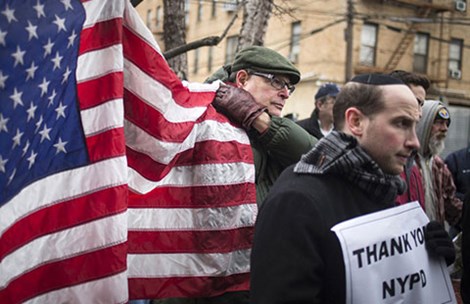 Biểu tình ủng hộ cảnh sát New York ngày 22-12. Ảnh: REUTERS