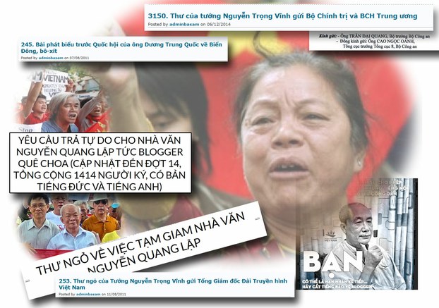 Sau khi nhà văn Nguyễn Quang Lập tức Bọ Lập bị bắt vào ngày 6 tháng 12, bốn ngày sau một bức thư do nhà văn Nguyên Ngọc chủ xướng với hơn 600 chữ ký ban đầu gửi đến cho ba ông Trương Tấn Sang, Nguyễn Tấn Dũng và Trần Đại Quang yêu cầu thả nhà văn vô điều kiện. Thư yêu cầu này có con số tăng hàng ngày cho tới hôm nay, trong ngày lễ Giáng Sinh năm 2014 con số người ký tên đã gần tới 1.500 người.
