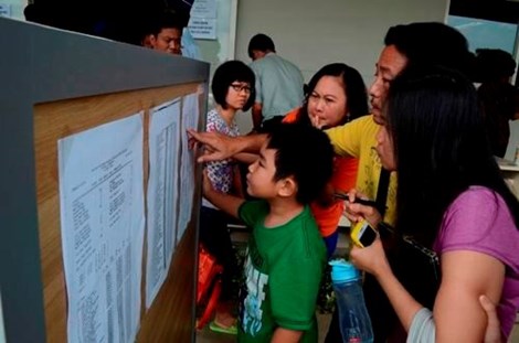 Người thân các hành khách đang dơi bảng danh sách các hành khách trên chuyến bay QZ8501 tại sân bay Juanda ở thành phố Surabaya, Indonesia - Ảnh: Reuters