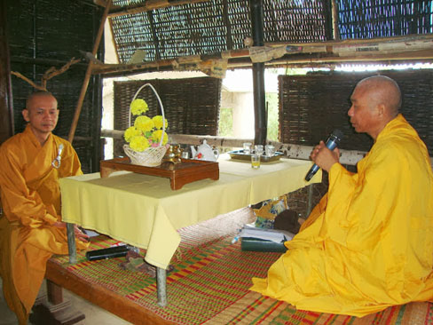 Mặc dù là pháp sư, song thượng tọa Thích Hồng Phương không quan tâm mấy trò cúng bái, hương khói. Ông trải chiếu ngồi trì chú với các môn đệ chừng mấy phút, rồi tiến đến bên hòn đá.