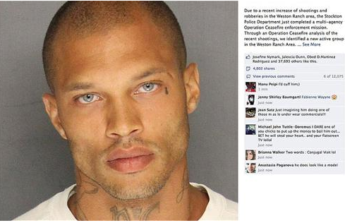Hình ảnh của Jeremy Meeks sau đó được cảnh sát Mỹ đăng lên Facebook đã nhận được 30.000 lượt like và 10.000 lời bình luận. Hàng tháng, người này còn nhận được hàng trăm bức thư từ người hâm mộ khuyến khích nên tham gia vào ngành công nghiệp của những người nổi tiếng.