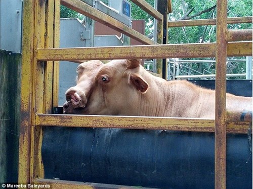Chú bò đực nặng 440kg này được bán với giá gần 6 triệu đồng ở Mareeba, Bắc Queensland. Australia. Tuy nhiên sẽ chẳng có gì gây ồn ào nếu như chú bò này không có một bộ dáng đặc biệt. Nó có không chỉ một mà hai khuôn mặt chồng chéo lên nhau.