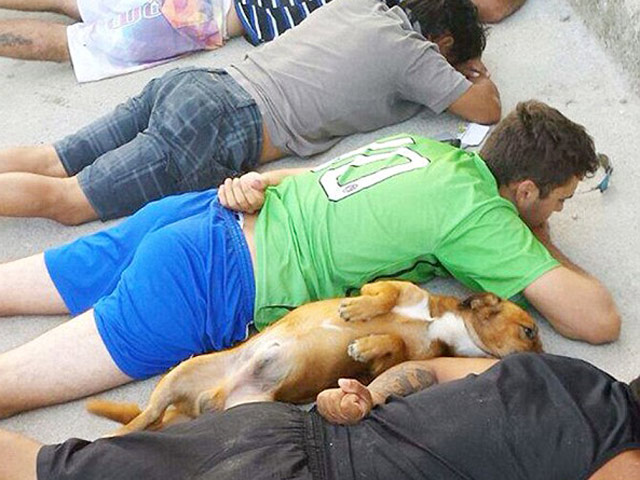 Một chú chó được băng đảng ma túy nuôi khôn đến kỳ lạ. Khi băng đảng này bị tóm, thấy các ông chủ của mình nằm úp mặt xuống đất theo lệnh cảnh sát, chú chó cũng chạy tới nằm giơ cả 4 chân lên để đầu hàng. Chỉ khác là chủ thì nằm úp, còn chú ta thì nằm ngửa thôi. Cảnh tượng thật thú vị phải không các bạn.