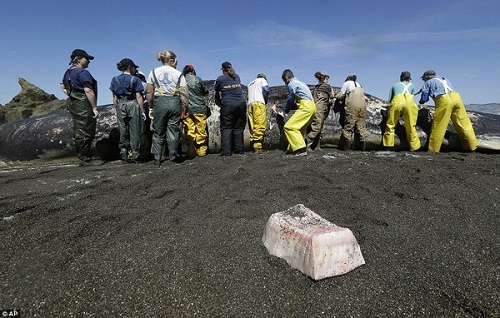 Các chuyên gia đã có mặt để tìm hiểu nguyên nhân cái chết của con vật khổng lồ.