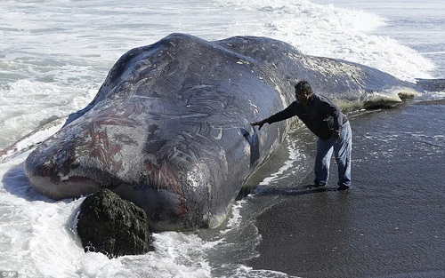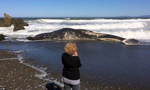 Xác cá nhà táng dài 15m nằm chềnh ềnh trên bờ biển California.