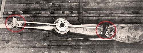 Người Pháp thay vào đó tìm kiếm một phương pháp tiếp cận khác. Phi công nổi tiếng Roland Garrosđã đề xuất với nhà thiết kế máy bay Raymond Saulnier tìm một giải pháp để khai hỏa khẩu súng máy Hotchkiss 8 mm xuyên qua đĩa cánh quạt của động cơ. Ý tưởng mà họ phát triển là gắn các tấm bọc thép và khiên hình tam giác làm lệch hướng đạn vào cánh quạt. Những cái khiên này có phần mũi hướng về phía buồng lái và chức năng của nó là khi đạn từ khẩu súng máy bắn trúng cánh quạt thì nó sẽ tản viên đạn ra ngoài, không bắn ngược về phía buồng lái. Garros đã thử nghiệm loại cánh quạt bọc thép có gắn nêm tản đạn này trên chiếc máy bay chiến đấu Morane-Saulnier Type L vào tháng 4 năm 1915 và ngay sau khi cất cánh, Garros đã bắn hạ 2 chiếc máy bay trinh sát Albatros của Đức. Garros được xem là người hùng nhưng thiết kế của ông làm giảm đáng kể hiệu năng của động cơ cánh quạt. Trong một cuộc oanh tạc lớn, máy bay của Garros bị dính đạn súng trường vào thùng nhiên liệu và bốc cháy. Ông bị bắt và thiết kế cánh quạt bọc thép, khiên tản đạn và kết cấu lắp súng máy rơi vào tay người Đức.