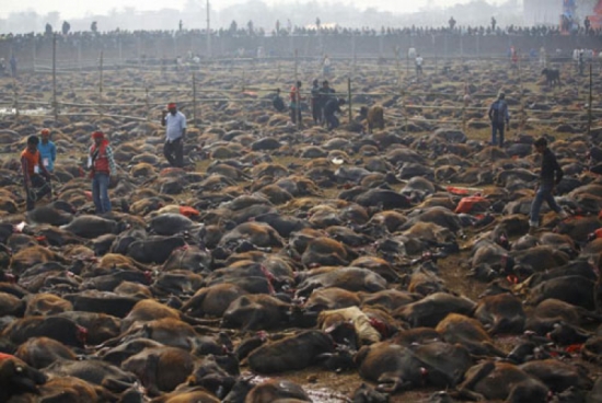 Theo ghi chép, lễ tế thần đó tên là Gadhimai của người Hindu ở Nepal, một trong những lễ tế động vật lớn nhất thế giới. Họ quan niệm, những con vật bị giết hại như trâu, bò, lợn, dê, cừu… phải hi sinh để làm vị thần sức mạnh Gadhimai “nguôi giận”.