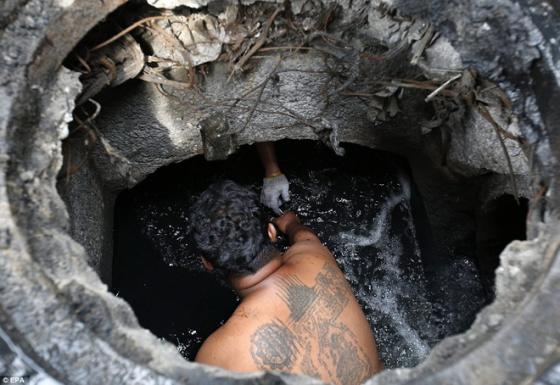 Theo Daily Mail, nghề thông cống ở Bangkok, Thái Lan có thể coi là một trong những công việc tồi tệ nhất thế giới. Bởi những người công nhân phải dùng tay không để xử lý rác thải, có khi phải “tắm” ngập người trong bùn đen, cống rãnh để làm việc.