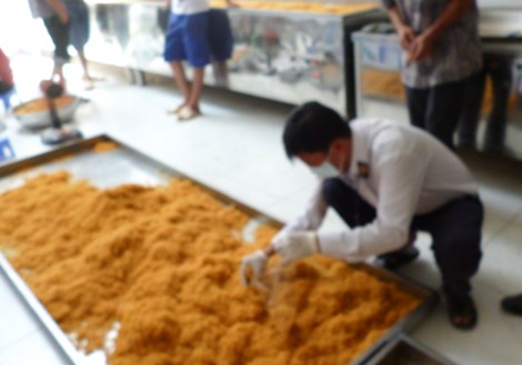Năm 2008, một cơ sở sản xuất chà bông ở phường Thới An, quận B́nh Thủy, TP Cần Thơ đă bị tố cáo là dùng thịt heo hư trộn lẫn giấy b́a các tông sấy khô, tẩm ướp gia vị để xuất xưởng thành ruốc chà bông. Tại thời điểm kiểm tra, xưởng sản xuất này chỉ có một máy xay trộn mà không có các vật dụng thiết yếu khác như xoong nồi, chảo sấy... để chế biến chà bông.