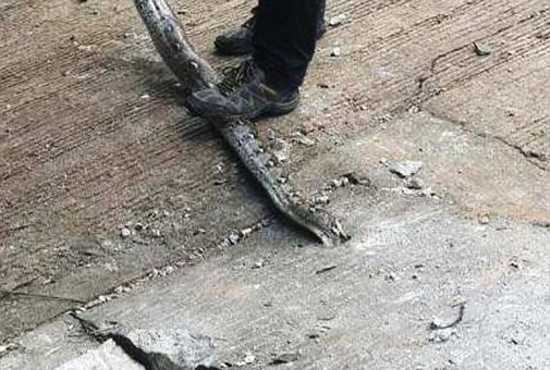 Con rắn khổng lồ dài 3 met dường như đã cố gắng luồn lách cơ thể của mình qua cái lỗ ở nắp cống nhưng vì thân hình quá khổ nên không thể chui lọt, cũng không thể bò ngược lại được.