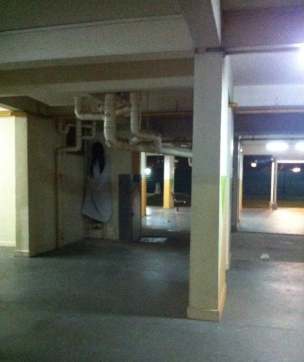 Một thanh niên gửi xe trong tầng hầm nơi anh sinh sống và chụp được bức hình gây hoang mang này.