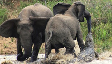 Cá sấu liều lĩnh tấn công ngoạm vòi voi.