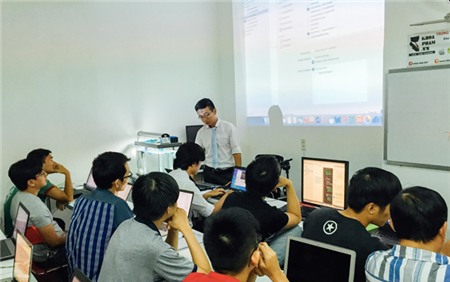 "Thứ các bạn học tại trường không phù hợp với công việc thực tiễn", người hướng dẫn có tên Phạm Khoa chia sẻ với tôi khi thưởng thức bánh xèo và phở sau giờ học. Lý do? Trường học tập trung cho lý thuyết nhiều hơn thực hành. Điều đó mang đến cho chàng trai 28 tuổi tự học lập trình này cơ hội giảng dạy cho người khác về cách viết ứng dụng iOS, Android và Windows Phone - những kỹ năng họ không thể học ở trường.