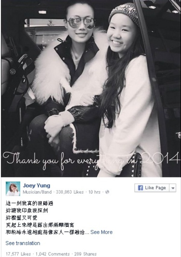 Nữ ca sĩ Joey Yung đã bày tỏ sự tiếc thương đối với fan hâm mộ xấu số của mình.