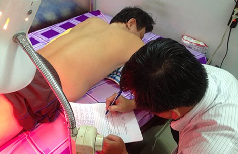 Bệnh nhân khác tên là VVĐ (50 tuổi, Tân Bình) bị thoát vị đĩa đệm, đau thần kinh tọa, thời gian điều trị là 20 ngày với chi phí 75 triệu đồng cũng với phương pháp trên và có… bảo hành (?).