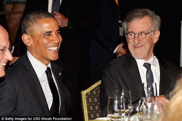 Tổng thống Obama và đạo diễn Spielberg trong một bữa tiệc.