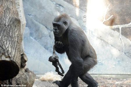 Đây là con khỉ đột mẹ thứ hai trong vườn thú Frankfurt quyết ôm xác con. Hồi tháng 7, một con khỉ đột khác tên là Shira cũng ôm xác con mới sinh đi quanh vườn thú suốt 4 ngày.