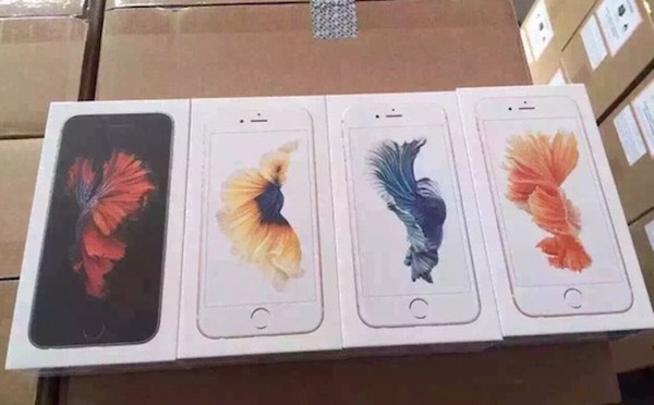 Một website tiếng Tây Ban Nha có tên iPhoneros mới đây đã đăng tải nhiều hình ảnh cho thấy hộp máy bản thương mại của iPhone 6s. Mặc dù trước đó hình ảnh hộp máy iPhone mới đã không ít lần được đăng tải thì đây là lần đầu tiên hộp máy cả bốn phiên bản màu máy khác nhau bị rò rỉ một cách rõ nét. Khác với những model iPhone trước đó, hộp máy iPhone 6s và iPhone 6s Plus không được in kèm iPhone với màn hình hiển thị màn hình Home Screen, thay vào đó người dùng sẽ thấy hình ảnh của những chú cá chọi đẹp mắt.