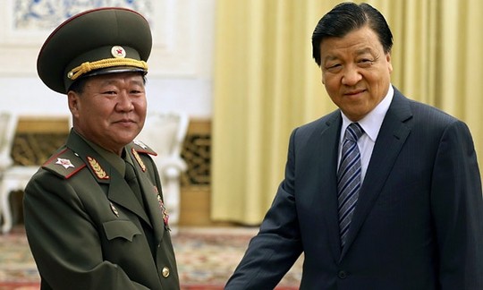 Ông Lưu Vân Sơn (phải) tiếp đặc sứ Triều Tiên Choe Ryong-hae hồi năm 2013. Ảnh: Reuters