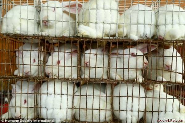 Các công nhân Trung Quốc phải giết và lột da 10.000 con thỏ mỗi ngày. Hàng ngàn con thỏ được nhồi nhét vào những chiếc lồng rất nhỏ, thậm chí chúng không thể đứng lên được.
