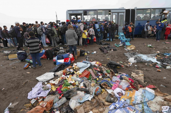 Người tị nạn xếp hàng lên xe bus tại Hungary để sang Đức