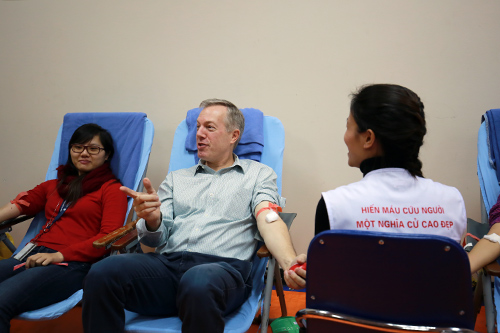 Trong lần tham gia hiến máu này còn có sự góp mặt của ngài Ted Osius - tân Đại sứ Hoa Kỳ tại Việt Nam. "Không chỉ tham gia hiến máu, tôi còn kêu gọi rất nhiều người thân, bạn bè tới tham dự sự kiện này. Trước đó, vào dịp lễ Giáng sinh, tôi cũng đã có những hoạt động ý nghĩa dành tặng các em nhỏ tại làng trẻ SOS (Hà Nội)", ngài Ted Osius cho biết thêm.