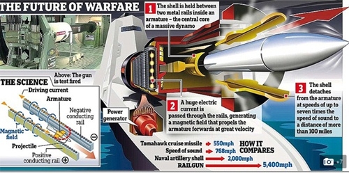Một loại vũ khí đặc biệt mà Mỹ đang theo đuổi đó là vũ khí phong cách "Star Wars" - giống như trong loạt phim kinh điển Chiến tranh giữa các vì sao. Loại vũ khí này có thể bắn ra những quả đạn nặng 10kg, di chuyển với vận tốc 5400 dặm/giờ và xuyên thủng 3 bức tường bê tông dày ở cách xa 100 dặm có thể được trang bị cho tàu chiến tàng hình. Đặc biệt loại vũ khí này sử dụng điện để tăng tốc bệ phóng lên tốc độ gấp 6-7 lần âm thanh, chứ không phải khai hỏa để bắn đạn đi.