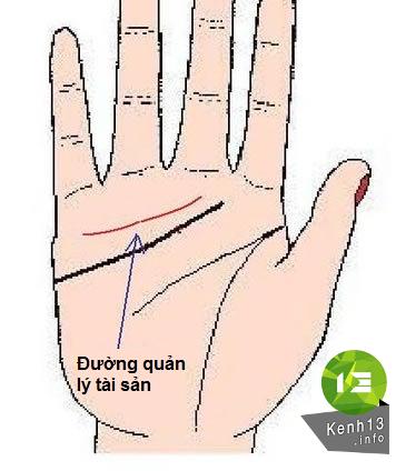 Phía trên đường tình cảm có một đường vân chạy song song gọi là đường quản lí tài sản. Những người có đường chỉ tay này thường được ông chủ hay cấp trên giao cho trách nhiệm quản lí tài sản. Thường là làm kế toán hay thủ quỹ cho những công ty lớn.