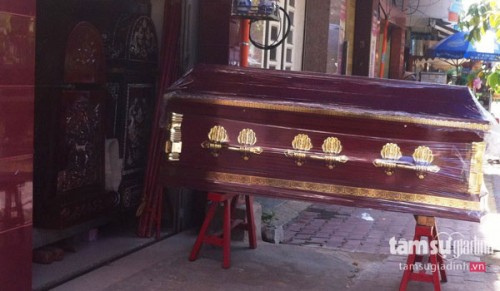 Rồi anh Hữu bùi ngùi kể về hoàn cảnh đáng thương của một đồng nghiệp làm nghề này đã lâu. Đó là ông Đến (53 tuổi, ở Mỹ Hạnh Nam, Đức Hòa, Long An). Hồi giữa năm, khi đang ngủ trong quan tài cho một trại hòm dưới Bình Dương, ông Đến đã chết thật. Ông Đến chết vì bệnh ung thư gan.