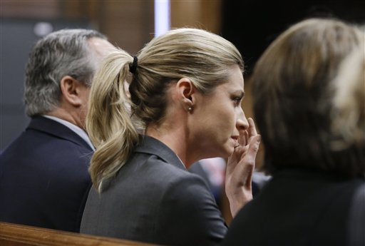 Nữ phóng viên Erin Andrews đã lau nước mắt khi nghe phán quyết của đoàn bồi thẩm về vụ việc của mình - Ảnh: AP