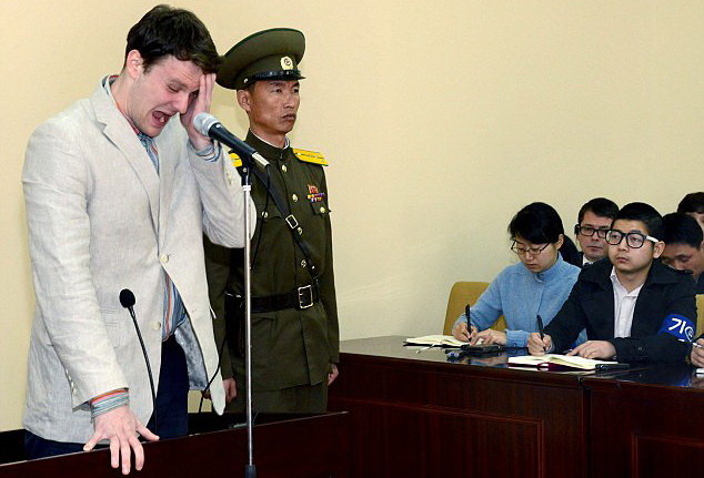 Otto Warmbier là sinh viên Đại học Virginia, Mỹ, bị bắt vào tháng 1-2016 khi đi du lịch Triều Tiên.