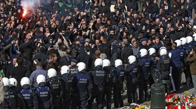 Hôm nay 27/3, tại quảng trường lớn giữa thủ đô Brussels hàng trăm người đã tới để tưởng niệm các nạn nhân trong vụ khủng bố tại sân bay và ga tàu điện ngầm hôm 22/3. Số người tham dự lên tới cả ngàn người. Bất ngờ, một nhóm thanh niên áo đen, được cho là nhóm cánh hữu, bất ngờ xuất hiện hô vang những khẩu hiệu chống thánh chiến.