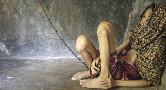 Trong một căn phòng tối, giống như một nhà tù, một người đàn ông tên là Awan cho biết ông bị xích chung thân với chiếc giường 24 giờ một ngày. Trong một căn phòng tối, giống như một nhà tù, một người đàn ông tên là Awan cho biết ông bị xích "chung thân" với chiếc giường "24 giờ một ngày". Ở những vùng sâu vùng xa thiếu thốn điều kiện chữa trị, nhiều gia đình phải nhờ đến các trung tâm chữa bệnh niềm tin nơi các bệnh nhân bị xích lại và không được đối xử như con người.