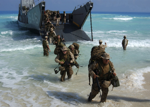 Đơn vị Thủy quân lục chiến Viễn chinh Mỹ số 13 diễn tập đổ bộ lên bờ biển. Ảnh: US Navy
