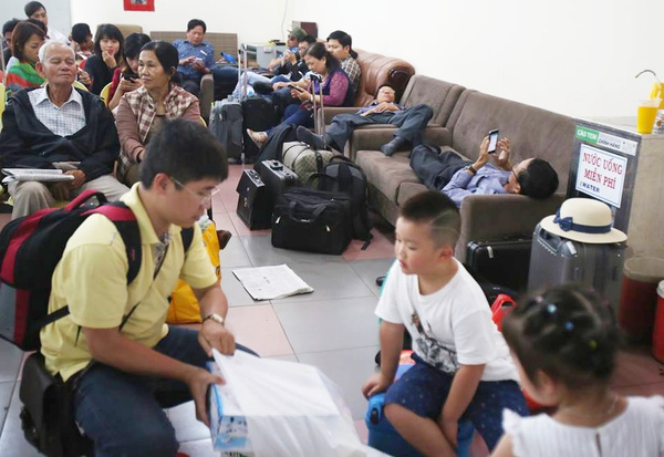 Trong khi nhiều người trong đó có trẻ nhỏ không có chỗ để ngồi, thì 2 người đàn ông vẫn rất thoải mái nắm hẳn ra ghế trong phòng chờ lên máy bay.