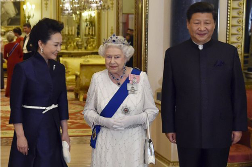 Nữ hoàng Elizabeth và vợ chồng Chủ tịch Tập Cận Bình tại London năm ngoái. Ảnh: PA