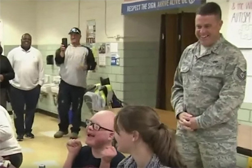 Old  Default Rưng rưng cuộc gặp giữa người cha quân nhân và cậu con trai bị down