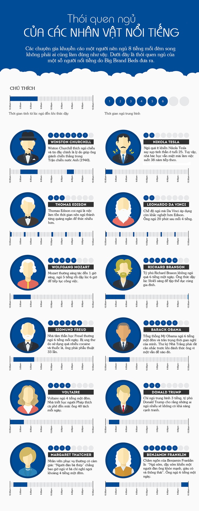 Tổng thống Mỹ Barack Obama ngủ trung bình 6 tiếng một đêm, từ 1h đến 7h sáng và không thích bị làm phiền nếu không có việc quan trọng, theo Big Brands Bed.