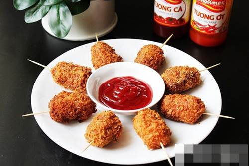 Món xúc xích theo công thức mới này ăn kèm với tương ớt thì quả là tuyệt vời. Vị thơm ngậy của bột ngô, độ giòn tan của lớp vỏ bột mì và mì tôm khiến bạn không thể không ăn đến cái thứ 2.