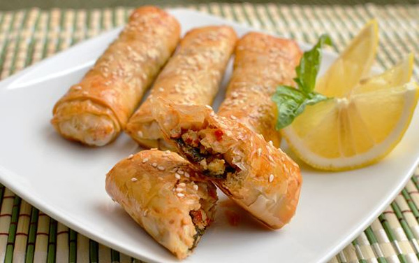Cuốn phần chả ram thật cẩn thận như hình. Sau đó đặt lên khay chống dính, cho vào lò nướng ở 190 độ C trong 15-20 phút là được.