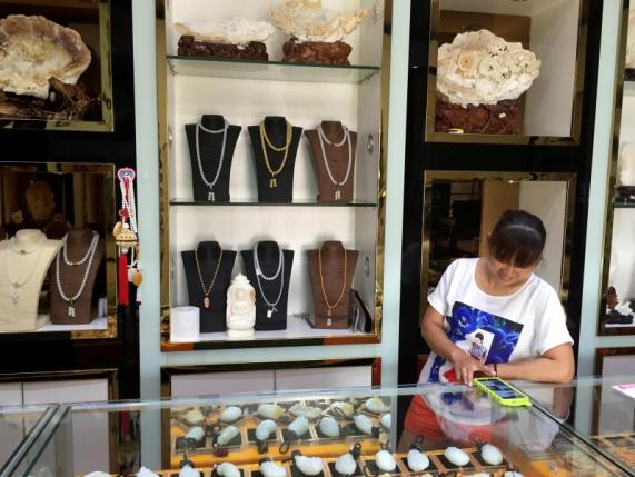 Trung Quốc đã cấm săn bắt trai khổng lồ tại các vùng biển của nước này năm ngoái, nhưng ở thị trấn ven biển Tanmen trên đảo Hải Nam, hầu hết các cửa hàng vẫn bày bán các sản phẩm làm từ vỏ loài trai vô cùng quý hiếm này.