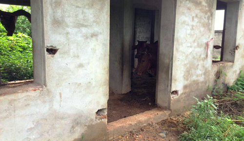 Tương tự, công trình nước sạch ở xã Gia Phong cũng “đắp chiếu” nhiều năm nay. Toàn bộ công trình không có tường rào chắn nên người dân tận dụng các khu nhà bên trong làm chuồng nhốt trâu bò, chất rơm khô, củi khô và trồng rau.