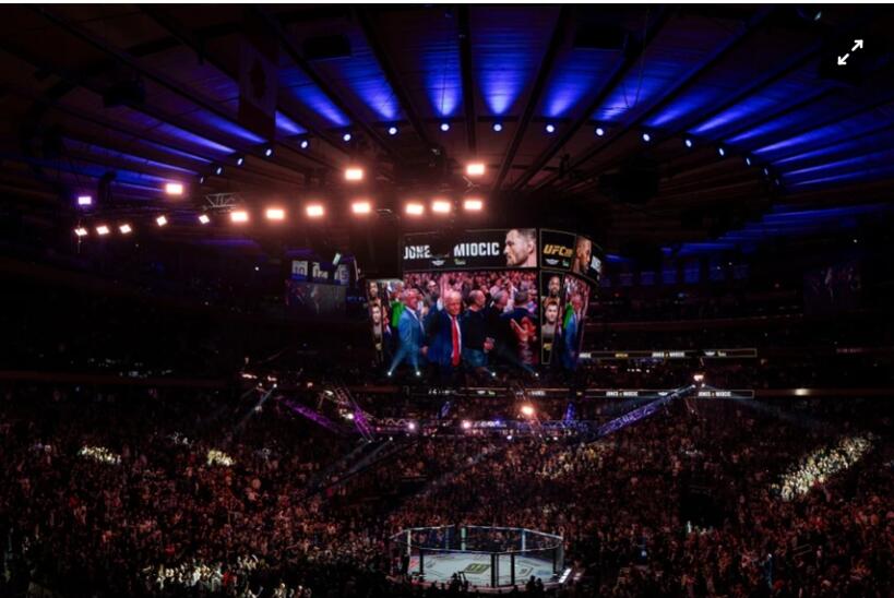 Ông Donald Trump đã có lần xuất hiện hiếm hoi trước công chúng sau ngày bầu cử tại nhà thi đấu Madison Square Garden vào tối 16/11 để dự sự kiện giải đấu võ thuật tổng hợp (UFC).