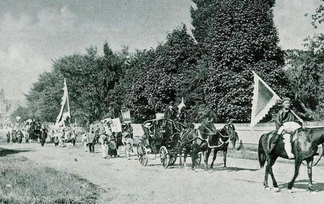 Đây là ảnh đám tang của một người Hoa ở Mỹ, từ ảnh có thể thấy những người này vẫn gìn giữ dụng phong tục tang lễ truyền thống, có người đi trước mở đường, sau đó kéo hoặc khiêng quan tài của người đã khuất. Tuy nhiên, chiếc xe ngựa phía sau lại là một chiếc xe ngựa điển hình của Mỹ, cho thấy một chút giao thoa văn hóa tại đây.