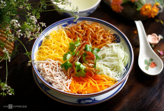 Bát mực nấu rối đẹp như bông hoa ngũ sắc với su hào xanh giòn, mực nâu đỏ, trứng gà vàng ươm, cà rốt cam đỏ, giò lụa trắng thơm. Đây là món đặc trưng mang phong vị Tết của người Hà Nội xưa.