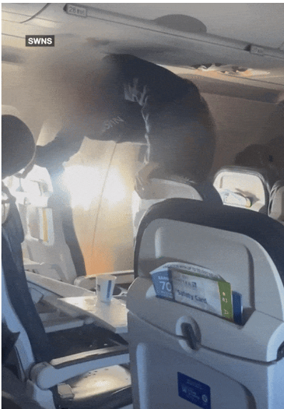 Theo video được hành khách cùng chuyến bay tên Gino Galofaro ghi lại, người đàn ông mặc bộ đồ thể thao tối màu, đứng trên ghế và liên tục đá mạnh vào phần lưng ghế ít nhất 10 lần cho đến khi nó gãy ngả xuống hàng ghế trống phía sau.
