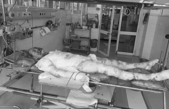 Liên nhập viện với bỏng 79% toàn cơ thể. Ảnh: NVCC.