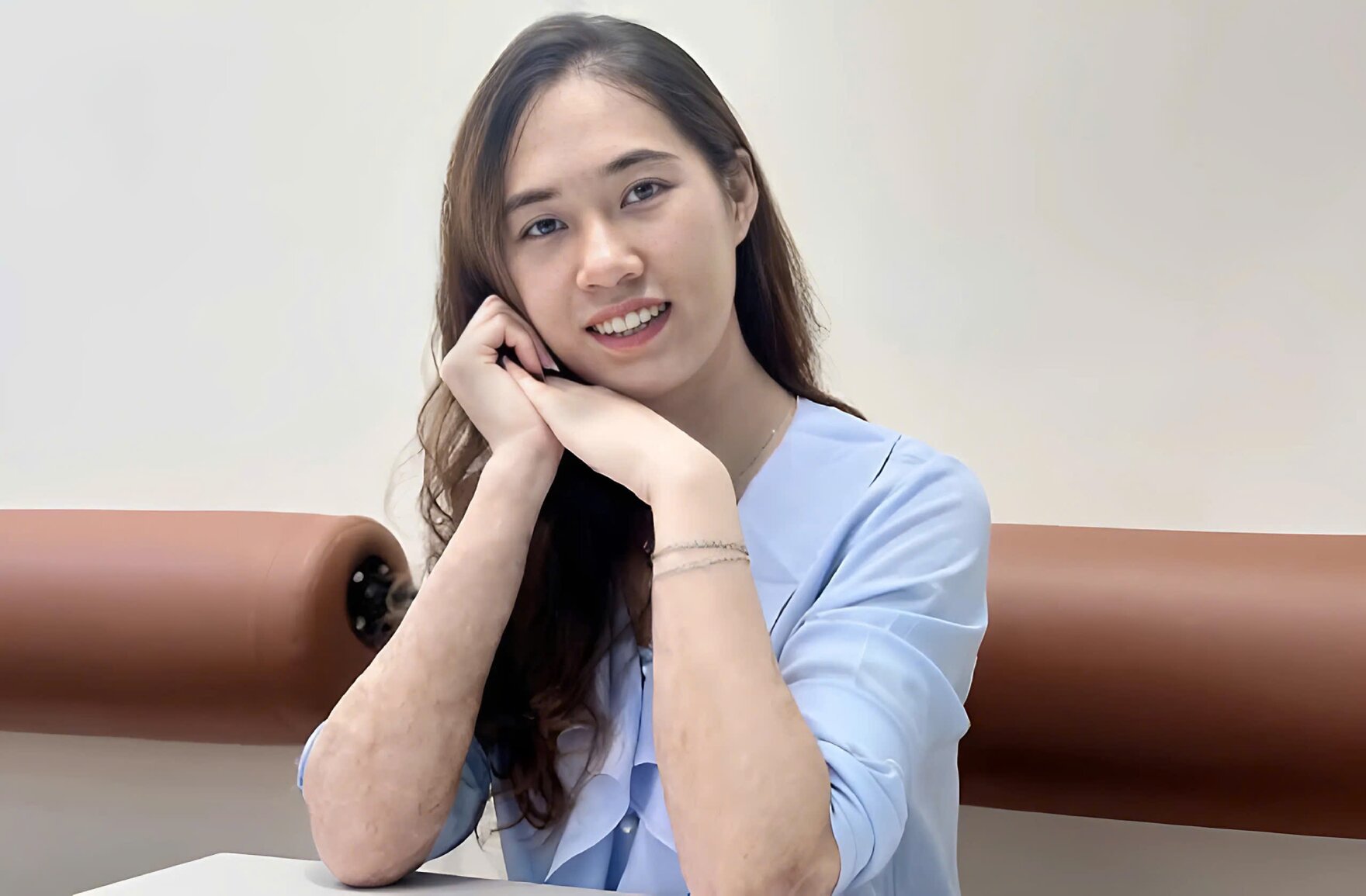 Liên vẫn còn những vết sẹo bỏng trên da. Ảnh: NVCC.