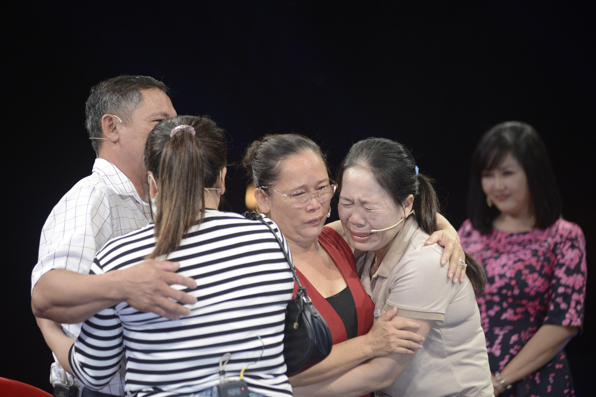 Nhờ có ê-kíp của chương trình, chị tìm lại được người thân. Đoàn tụ với những người ruột thịt của mình trên sân khấu, chị bật khóc nức nở và liên tục nói lời xin lỗi. “Em xin lỗi các anh chị nhiều lắm. Vì ba em mà các anh chị khổ nhiều. Em muốn tìm lại anh chị để bù đắp cho những sai lầm của ba…”.